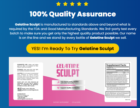 Each bottle of Gelatine Sculpt is produced in certified facilities that operate under strict quality guidelines. The manufacturing process follows Good Manufacturing Practices, and every batch is tested by independent third-party laboratories to ensure safety, purity, and consistency.